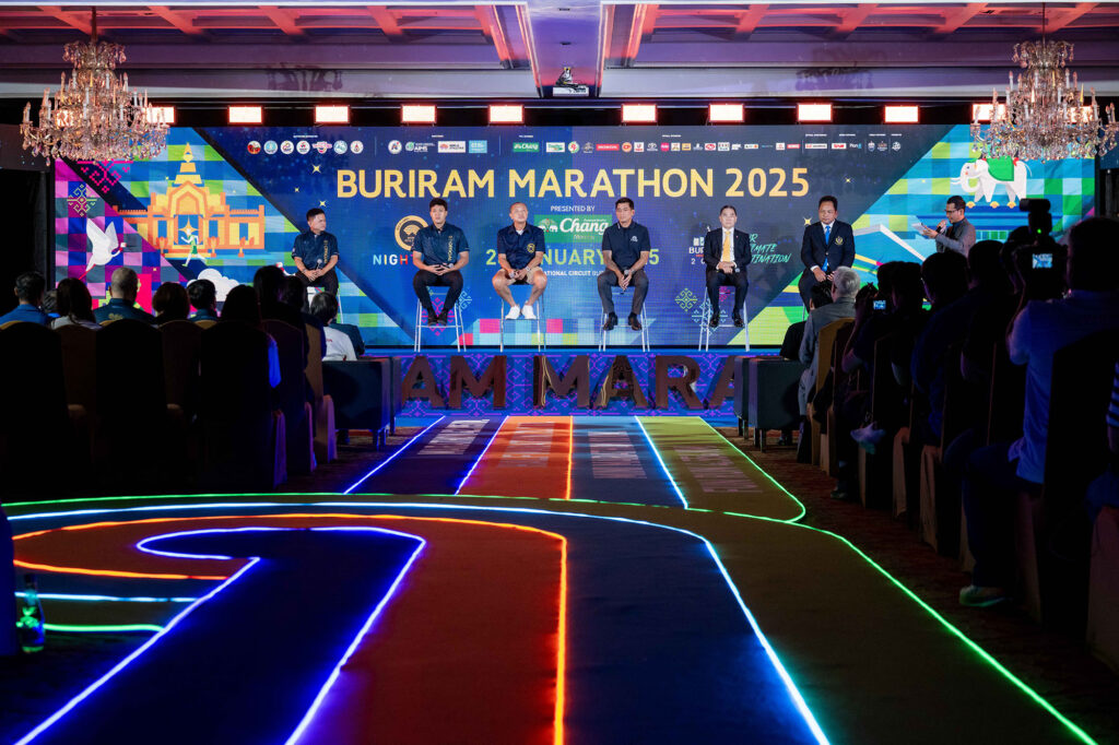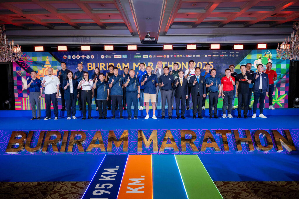 บุรีรัมย์ มาราธอน 2025 สุดยอดไนท์ รัน อันดับหนึ่งขวัญใจคนไทย แถลงข่าวใหญ่ ชิงชัย 25 มกราปีหน้า! ทุกฝ่ายโชว์ความพร้อม บูรณาการความร่วมมือรัฐ-เอกชนเต็มขั้น ฉลองปีที่ 9 อย่างยิ่งใหญ่ ชูเป้าหมายใหม่ ปักหมุดสู่การเป็นสวรรค์ของนักวิ่งทั่วโลก เป็นแรงหนุนนักวิ่งไทย ชาย-หญิงที่ทำเวลาดีที่สุด 20 คนในระยะฟูลมาราธอนต่อยอดสู่แพลตินัมในรายการโตเกียวมาราธอน โดยออกค่าที่พัก-เดินทางและค่าสมัคร ปีนี้ยังมีการอัดฉีดเพิ่ม 1,300,000 บาท มอบเป็นเงินรางวัลพิเศษ สุ่มแจกให้กับนักวิ่ง ระยะละ 50 รางวัลรวม 200 รางวัล เพื่อเติมความสุขให้กับแฟนคลับบุรีรัมย์มาราธอนที่อยู่ร่วมกันมาอย่างยาวนาน นับเป็นรายการวิ่งที่มีมูลค่ารางวัลรวมสูงที่สุดในประเทศไทยกว่า 7.3 ล้านบาท ด้วยกระแสตอบรับสุดปัง ยอดจอง Bib เต็มทุกระยะเหลือเพียง Fun Run เท่านั้น ปีที่พิเศษนี้ทุกคนไม่ต้องซื้อรูป แจกรูปให้นักวิ่งแบบเรียลไทม์ “ฟรี” ด้วยเทคโนโลยีสุดล้ำที่นำมาใช้กับงานวิ่งที่แรกและที่เดียวในโลก