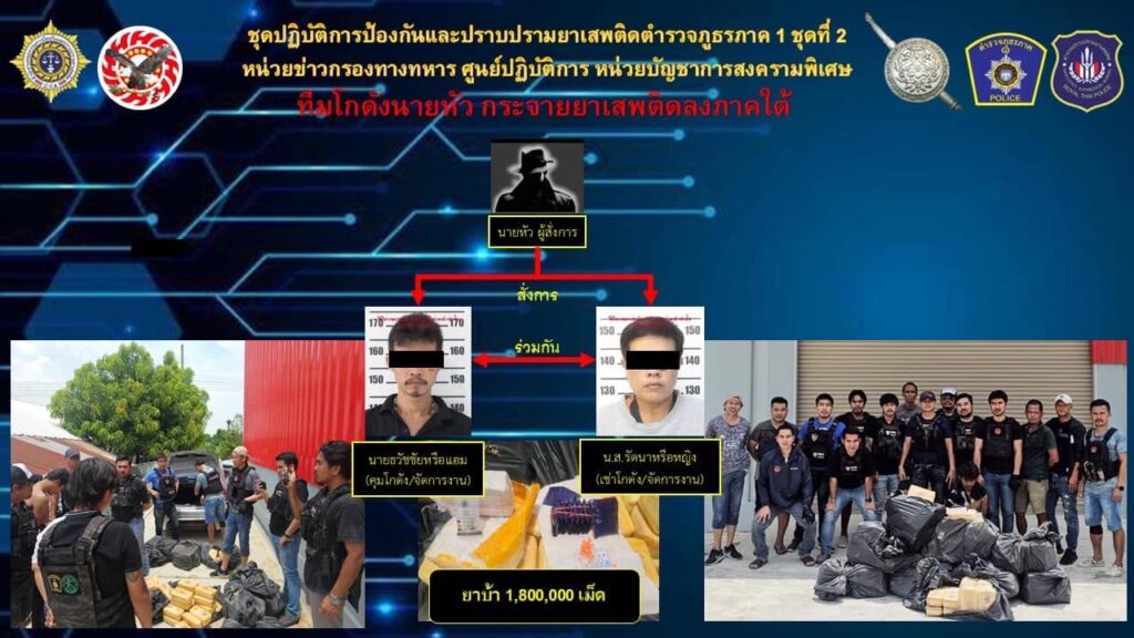 แถลงข่าวผลการจับกุมเครือข่ายยาเสพติด “ทีมโกดังนายหัว” ซึ่งกระจายยาเสพติดลงภาคใต้ ยึดยาบ้า 1,800,000 เม็ด มูลค่ากว่า 54,000,000 บาท