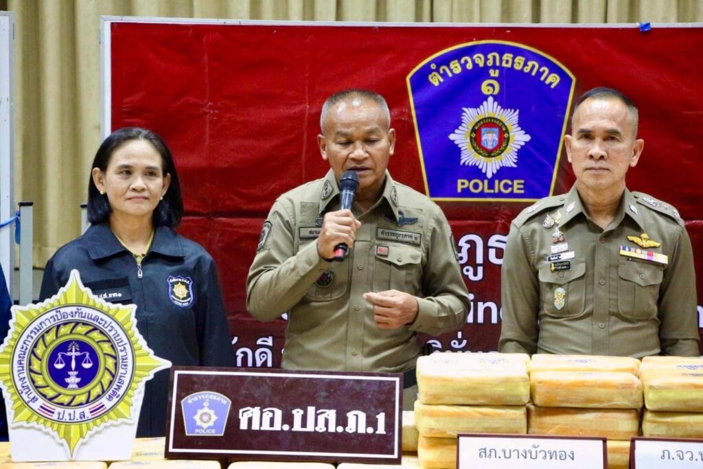 ณ ตำรวจภูธรภาค 1 การจับกุมในครั้งนี้ เป็นการยับยั้งการแพร่กระจายของยาเสพติดไปสู่ประชาชนได้เป็นจำนวนมาก ซึ่งยาเสพติดของกลางหากถูก