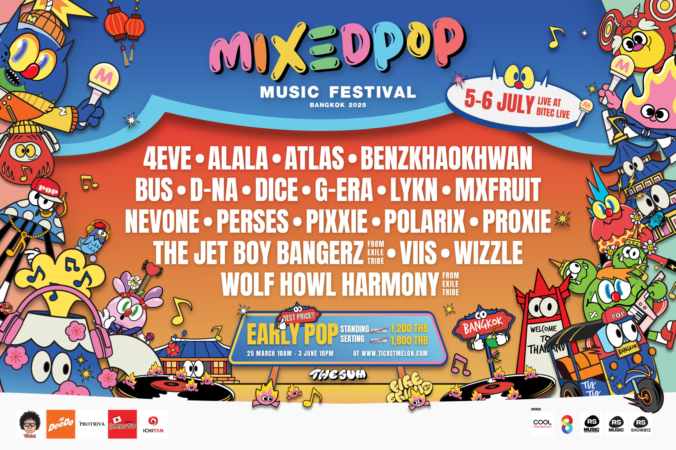 เตรียมป็อปให้สุด “ MIXEDPOP MUSIC FESTIVAL BANGKOK 2025” คัมแบค รวมไลน์อัพศิลปินตัวท็อปจากทั่วเอเชีย กดบัตร Early Pop 25 มีนาคมนี้