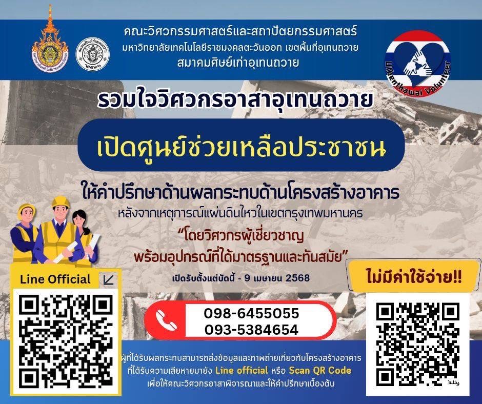 จากเหตุการณ์แผ่นดินไหว ส่งผลให้หลายพื้นที่ในกรุงเทพมหานครและปริมณฑลได้รับผลกระทบ โดยเฉพาะอาคารสูงที่เกิดรอยร้าวและสร้างความกังวลให้กับประชาชน จึงได้มีการจัดตั้งศูนย์ให้คำปรึกษาดังกล่าว ที่เกิดจากความร่วมมือระหว่างสมาคมศิษย์เก่าอุเทนถวาย และคณะวิศวกรรมศาสตร์และสถาปัตยกรรมศาสตร์ มหาวิทยาลัยเทคโนโลยีราชมงคลตะวันออก (เขตพื้นที่อุเทนถวาย) โดยมีเป้าหมายเพื่อช่วยเหลือประชาชน ในการตรวจสอบความปลอดภัยของอาคารที่อาจได้รับความเสียหายจากแผ่นดินไหว โดยไม่คิดค่าใช้จ่าย
