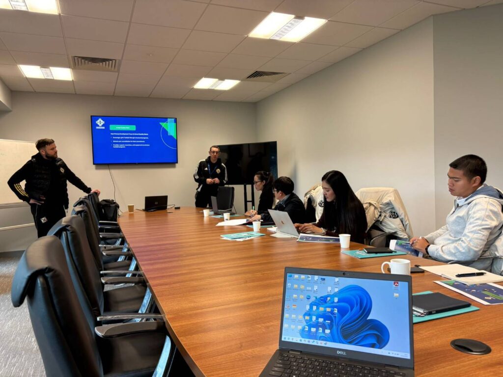 ภายในโครงการดังกล่าวได้รับเกียรติจาก คอนราด เคิร์กวูด นายกสมาคมฟุตบอลไอร์แลนด์เหนือ ให้การต้อนรับและให้ข้อมูลเกี่ยวกับการพัฒนาฟุตบอลหญิงของไอร์แลนด์เหนือ รวมทั้งทางด้าน แองเจล่า แพลตต์ ผู้อำนวยการฝ่ายฟุตบอลหญิง พร้อมด้วย ทีมงานฝ่ายฟุตบอลหญิงของสมาคมฟุตบอลไอร์แลนด์เหนือ ได้นำเสนอข้อมูลและให้ความรู้ตามหัวข้อหลัก ดังนี้