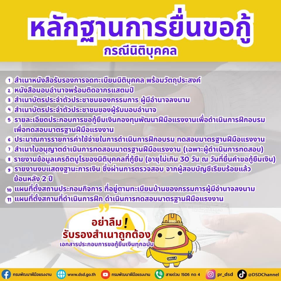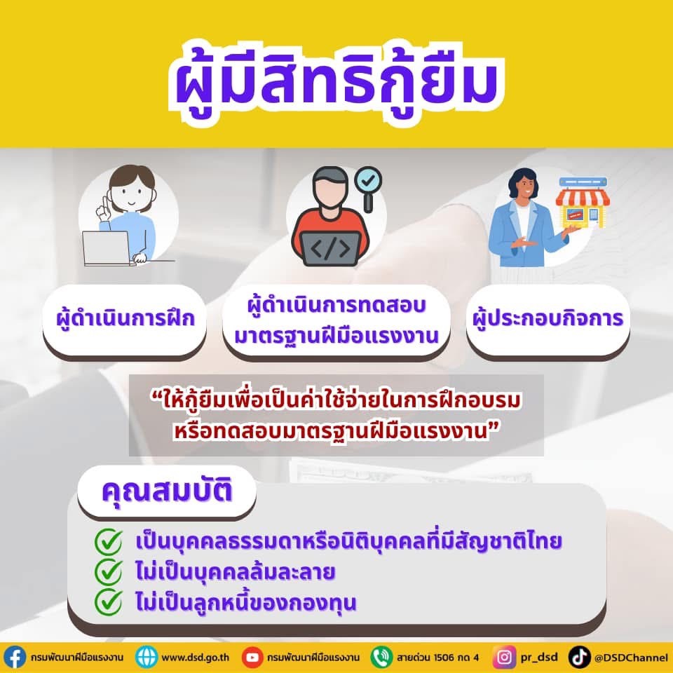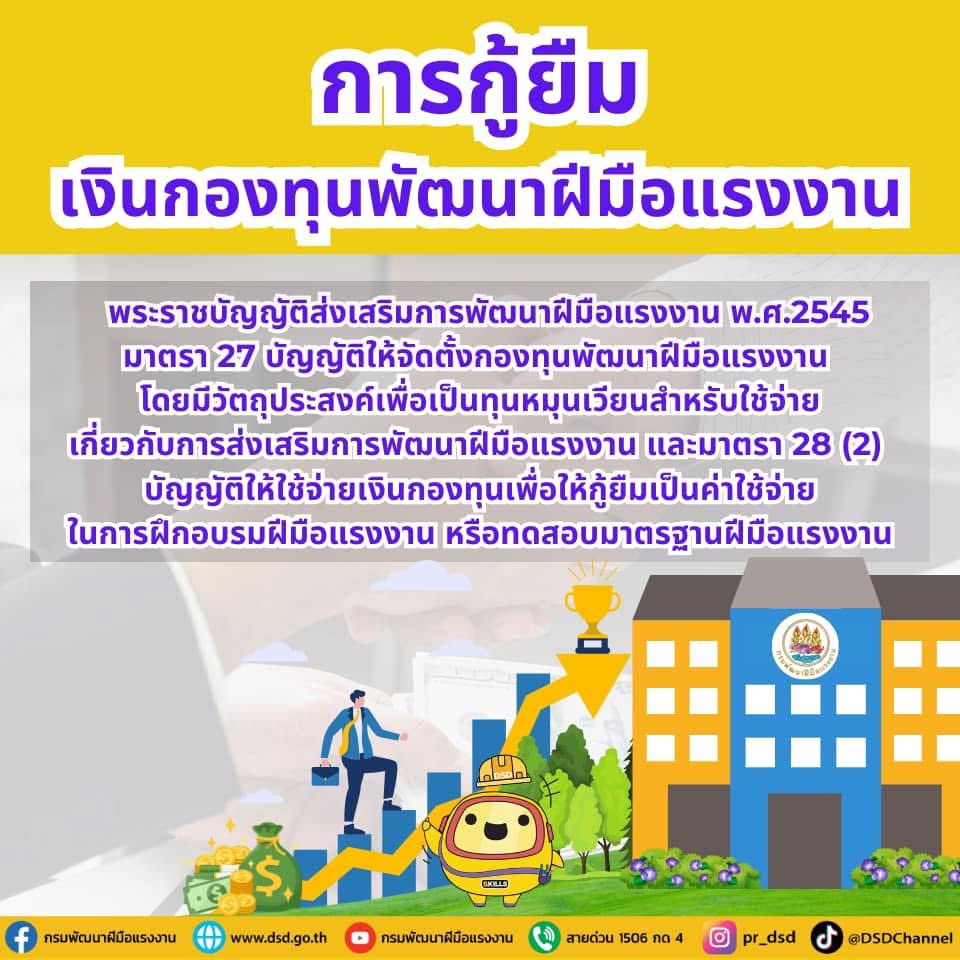 ภายใต้นโยบายของนายพิพัฒน์ รัชกิจประการ รัฐมนตรีว่าการกระทรวงแรงงาน กรมพัฒนาฝีมือแรงงานจึงเปิดให้กู้เงินดอกเบี้ย 0% จากกองทุนพัฒนาฝีมือแรงงาน วงเงินสูงสุด 1 ล้านบาทต่อครั้ง ผ่อนชำระได้ภายใน 1 ปี เพื่อให้นายจ้างสามารถนำไปใช้เป็นค่าใช้จ่ายในการฝึกอบรมและทดสอบมาตรฐานฝีมือแรงงานของพนักงาน