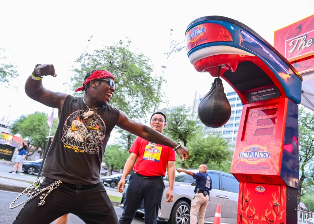 เปิดตัวแคมเปญสุดยิ่งใหญ่ กับ 2 นักแสดงชั้นนำเกรซ กาญจน์เกล้า-รัศมีแข วันแรก (21 มิ.ย.) ของการฉาย Immersive บนจอโดมคอนกรีตขนาดยักษ์ ได้รับเกียรติจาก 2 นักแสดงชั้นนำอย่างคุณเกรซ กาญจน์เกล้า ด้วยเศียรเกล้า และคุณรัศมีแข ฟ้าเกื้อล้น มารับชมความยิ่งใหญ่ และยังร่วมสร้างสีสันให้กับแคมเปญผ่านกิจกรรมเล่นเกมแจกของที่ระลึกแก่นักท่องเที่ยวต่างชาติที่มาชมมวยในแมตซ์สำคัญครั้งนี้ด้วย โดยสามารถรับชม Immersive แบรนด์ซอสพริกศรีราชาพานิชได้ตลอด 3 เดือนนี้