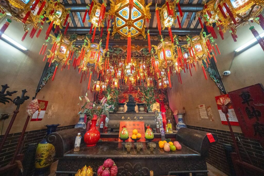 เริ่มต้นกันที่วัดแชกง โหวช้ง วัดเล็กๆ ในย่านไซกุง สร้างขึ้นราว 400 ปีก่อน ถือได้ว่าเป็นวัดแชกงที่เก่าแก่กว่าวัดแชกงที่ซาถิ่น (ที่เป็นที่นิยมสุดๆ ในหมู่คนไทย และกำลังปรับปรุงพื้นที่ จะแล้วเสร็จเดือนกันยายน 2568) จึงเป็นเวลาที่เหมาะกับการสักการะวัดแชกง โหวช้งที่สุด คนในย่านไซกุงสร้างวัดนี้ขึ้นเพื่อเป็นเกียรติและแสดงความเคารพต่อท่านนายพลแชกง แม่ทัพผู้เกรียงไกรแห่งราชวงศ์ซ่ง เชื่อกันว่าพลังอำนาจของท่านจะช่วยปัดเป่าโชคร้าย พัดพาโชคดีเข้าหาตัว และให้พรด้านธุรกิจรุ่งเรือง วัดแชกง โหวช้งยังมีกังหันใหญ่ 2 ตัวตั้งอยู่ด้านหน้าวัด ตัวทางซ้ายเป็นสัญลักษณ์สื่อถึงครอบครัว ส่วนตัวทางขวาสื่อถึงความราบรื่นในชีวิต