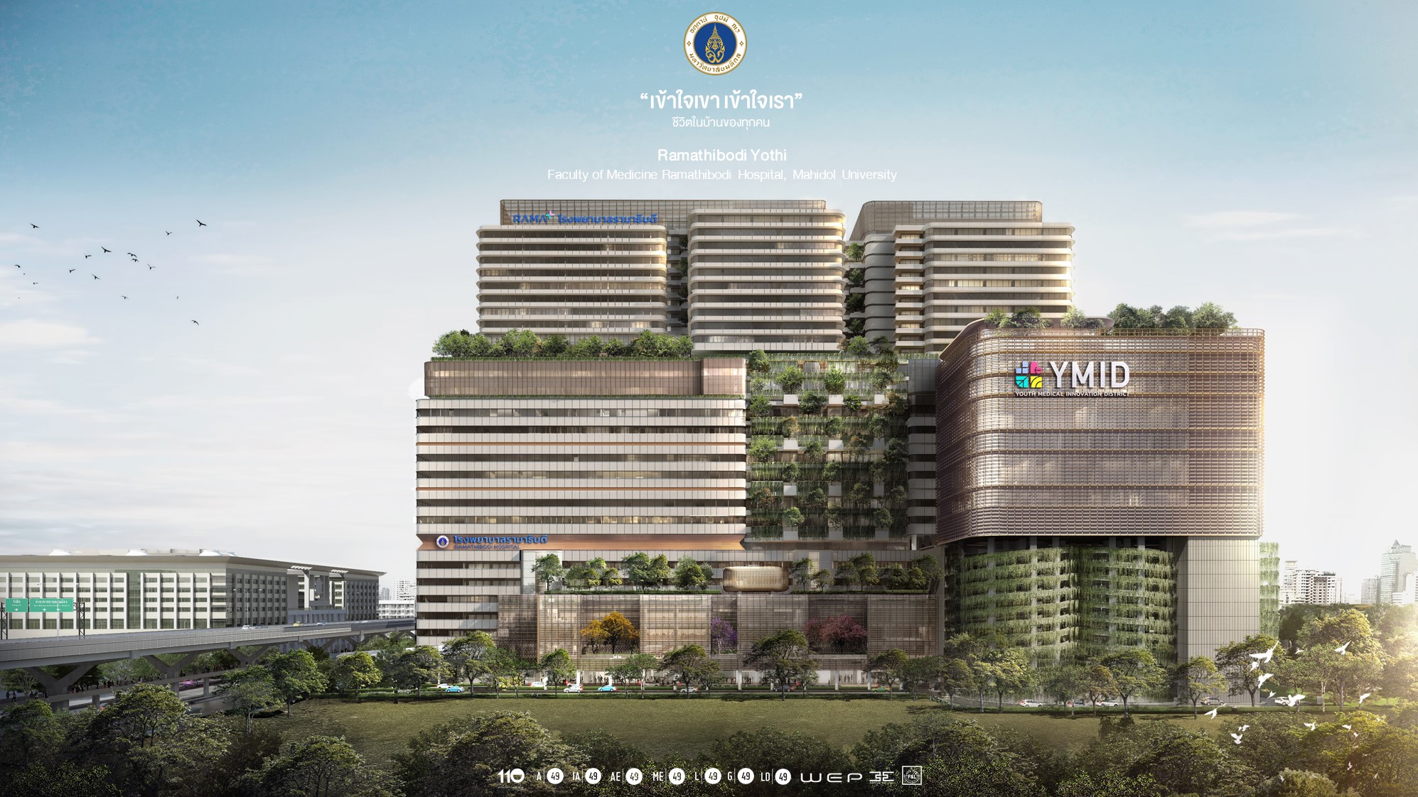 เพื่อบูรณาการศักยภาพของหน่วยงานด้านการแพทย์ สนับสนุนการศึกษา และขับเคลื่อนงานวิจัยอย่างเต็มรูปแบบ จึงต้องมีพื้นที่ขนาดใหญ่เพียงพอรองรับผู้ป่วยที่เพิ่มขึ้นต่อเนื่อง โครงการ “อาคารโรงพยาบาลรามาธิบดีและย่านนวัตกรรมโยธี” ก่อตั้งขึ้นเพื่อตอบสนองต่อจำนวนผู้ป่วยที่เพิ่มขึ้นต่อเนื่อง ท่ามกลางข้อจำกัดของพื้นที่เดิมและอาคารหลักอายุเกิน 60 ปีที่ ภายใต้แนวคิด User-Centric Design ผสานเทคโนโลยี AI การแพทย์แม่นยำ (Precision Medicine) และงานวิจัยขั้นสูง เพื่อรองรับการรักษาในยุคดิจิทัล