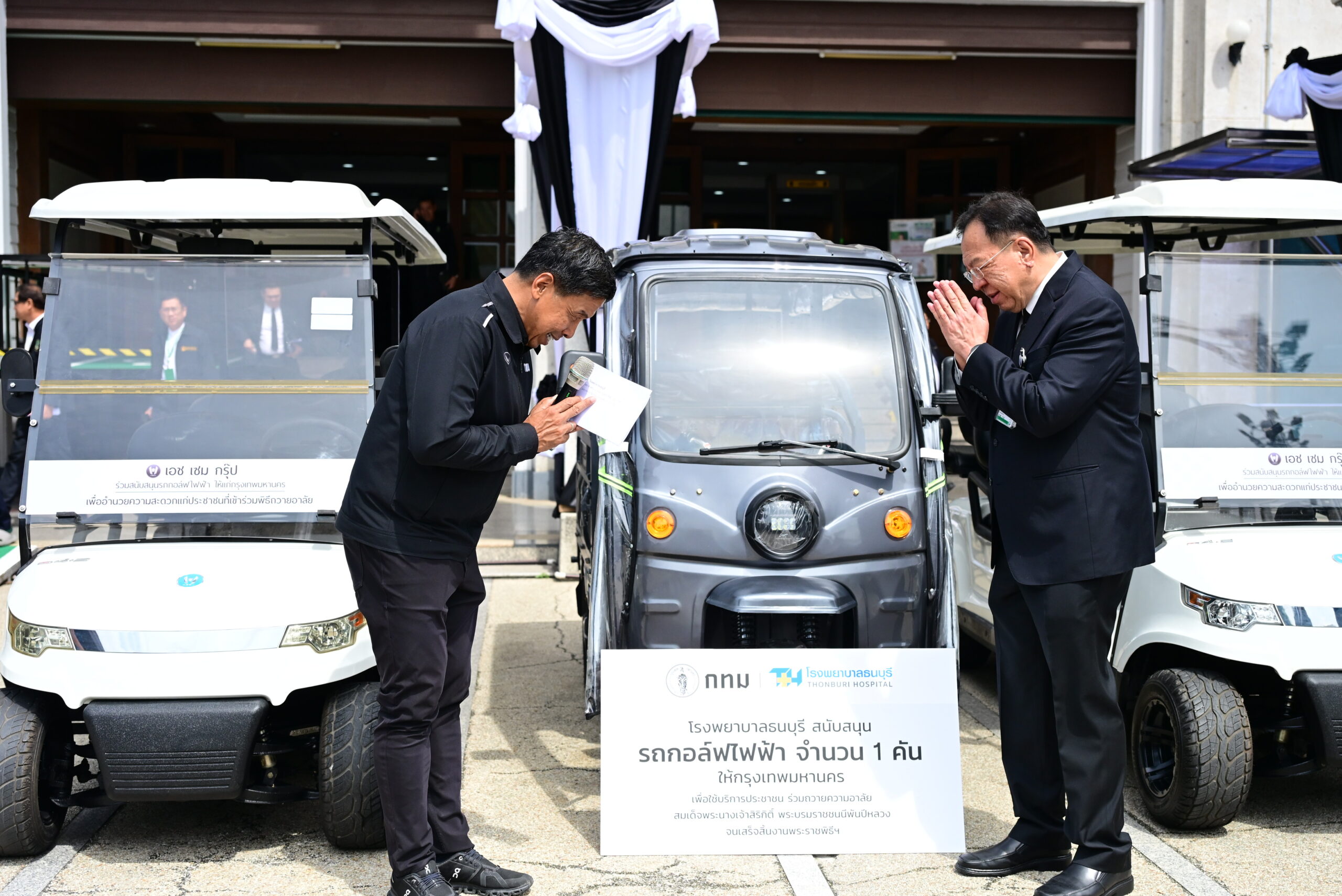 วันนี้ (6 พ.ย.68) เวลา 11.30 น. ณ หน้าห้องรัตนโกสินทร์ ศาลาว่าการกรุงเทพมหานคร เสาชิงช้า เขตพระนคร: นายชัชชาติ สิทธิพันธุ์ ผู้ว่าราชการกรุงเทพมหานคร รับมอบสิ่งของจากองค์กรต่างๆ เพื่อนำไปใช้ประโยชน์ในการอำนวยความสะดวกให้ประชาชนที่เดินทางมาถวายสักการะพระบรมศพ สมเด็จพระนางเจ้าสิริกิติ์ พระบรมราชินีนาถ พระบรมราชชนนีพันปีหลวง ดังนี้ 1. รถกอล์ฟไฟฟ้าขนอาหาร จำนวน 1 คัน จากศาสตราจารย์นายแพทย์วิศิษฐ์ วามวาณิชย์แพทย์ผู้ชำนาญการโรคทางด้านกระดูกและข้อ โรงพยาบาลธนบุรี 2. วีลแชร์ 30 คัน จาก ชมรมคนรักบางกอกน้อย โดย ร้านยาเพชรรัตน์ 3. รถกอล์ฟไฟฟ้า หลายชนิด จำนวน 30 คัน จาก คุณวันชัย ลี้นะวัฒนา ประธานเจ้าหน้าที่บริหาร บริษัท เอช เซม เทรดดิ้ง คอร์ปอเรชั่น จำกัด ผู้แทน เอช เซม กรุ๊ป และ 4. ทีวีซัมซุง 20 เครื่อง จาก บริษัท ไทยซัมซุง อิเลคโทรนิคส์ จำกัด