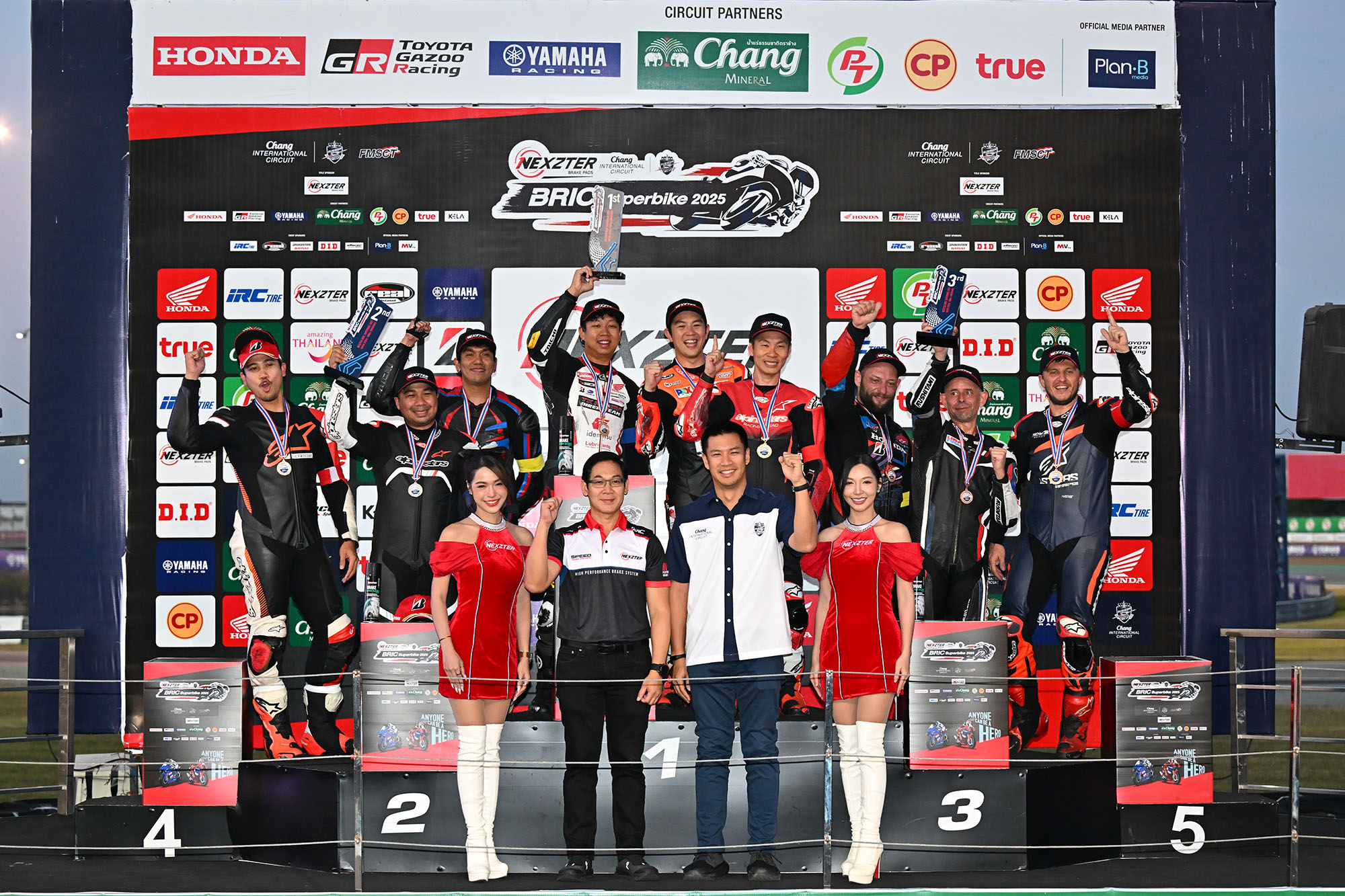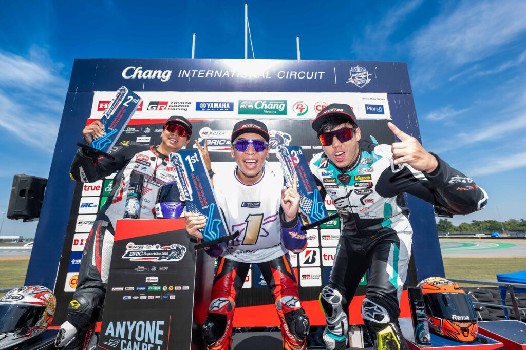 ศึกซูเปอร์ไบค์มาตรฐานโลก “เน็กซ์เตอร์ บีอาร์ไอซี ซูเปอร์ไบค์ แชมเปียนชิพ 2025” รูดม่านปิดฉากอย่างยิ่งใหญ่ ด้วยเกมการลุ้นแชมป์สุดมันส์ทุกรุ่นในเรซสุดท้าย โดย “มิกซ์” ธนัช ละอองปลิว นักบิดดาวรุ่งจาก อิเดมิตสึ ฮอนด้า ทีม คริสมาส เข้าวินส่งท้ายปี ขณะ “แสตมป์” อภิวัฒน์ วงศ์ธนานนท์ จาก อีสต์ เอ็นเจที เรซซิ่ง ทีม ผงาดแชมป์ประจำปีรุ่นใหญ่ ด้าน นธีธาร ทองโคตร จาก ยามาฮ่า ทีเอ็นพี พีทีที ลูบริแคนท์ส ทีม คว้าชัย ซูเปอร์สต็อกพร้อมครองแชมป์ประจำปี ส่วน ต่อศักดิ์ นวลสาย จาก ยามาฮ่า ทีเอ็นที พีทีที ลูบริแคนท์ส ครองบัลลังก์ ซูเปอร์สปอร์ต 600 ซีซี