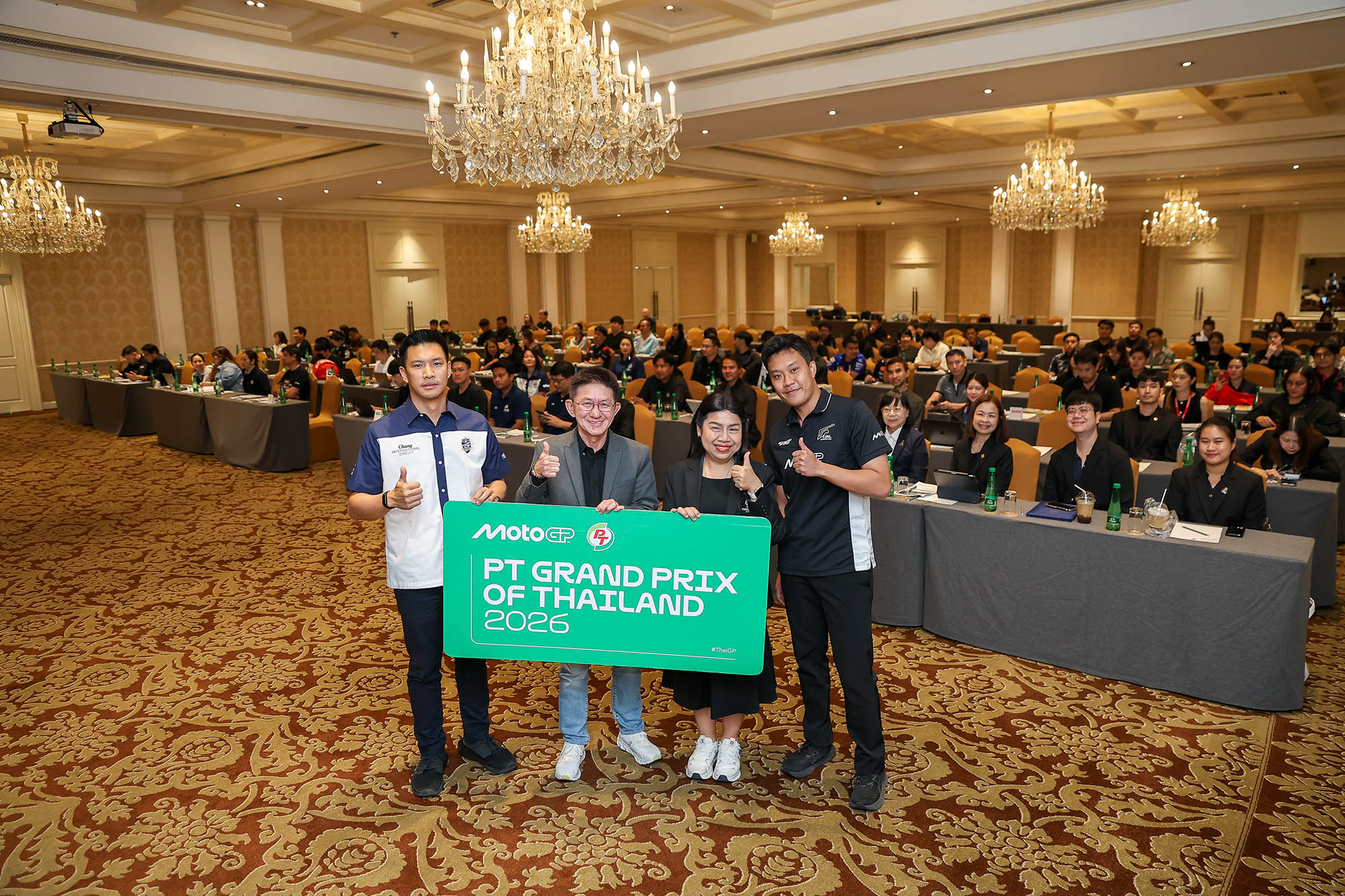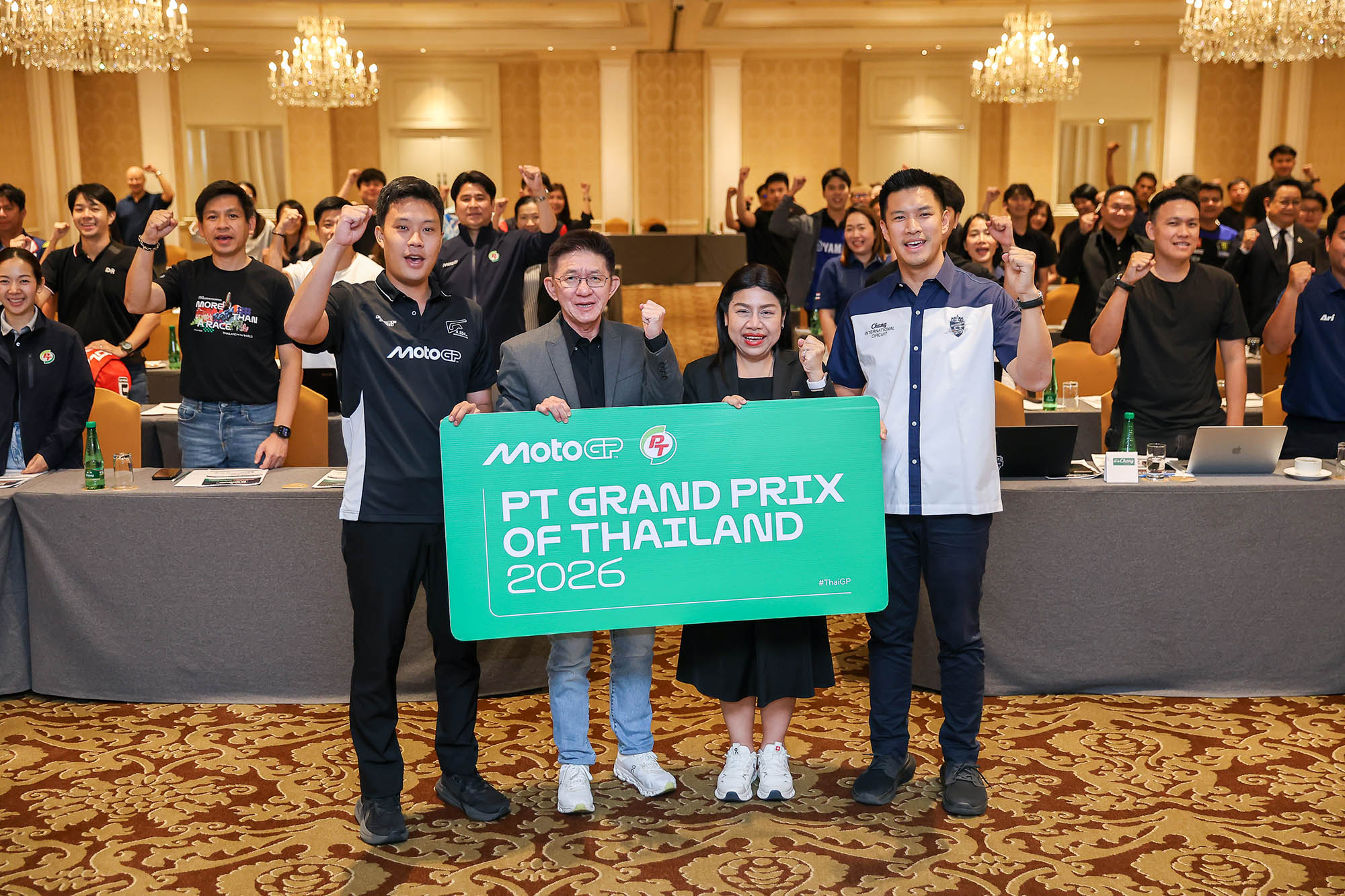 ส่วนในช่วงบ่ายเป็นการประชุมความพร้อมการจัดการแข่งขันรถจักรยานยนต์ทางเรียบชิงแชมป์โลก MotoGP สนามประเทศไทย ฤดูกาล 2026 ภายใต้ชื่อรายการ PT Grand Prix of Thailand 2026 นำโดยตัวแทนจากการกีฬาแห่งประเทศไทย นางโปรดปราน สมานมิตร รองผู้ว่าการการกีฬาแห่งประเทศไทย ฝ่ายกีฬาอาชีพและกีฬามวย ร่วมกับ นายฉลอง ติรไตรภูษิต ผู้อำนวยการฝ่ายสื่อสารองค์กร บริษัท พีทีจี เอ็นเนอยี จำกัด (มหาชน) หรือ PTG ไตเติ้ลสปอนเซอร์