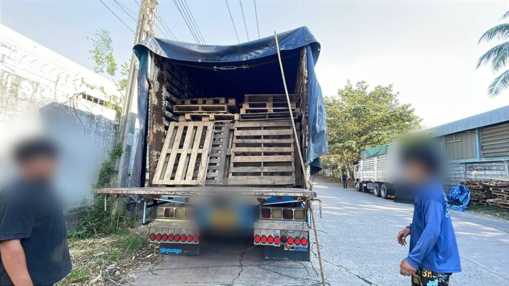 พฤติการณ์ เจ้าหน้าที่ตำรวจ กก.2 บก.ปคบ. ได้สนธิกำลังกับชุดพญาไท กรมปศุสัตว์ เข้าตรวจสอบรถบรรทุกสิบล้อต้องสงสัยจำนวน 2 คัน ในพื้นที่ อ.บางบัวทอง จ.นนทบุรี จากการตรวจค้นอย่างละเอียดพบว่า ขบวนการนี้มีการวางแผนมาอย่างดีเพื่อหลบเลี่ยงการตรวจสอบของเจ้าหน้าที่ โดยการนำ ไม้พาเลท มาวางเรียงรายปกปิดทับซ้อนอยู่ด้านบนของกลาง เพื่ออำพรางสายตาเจ้าหน้าที่หากมีการเรียกตรวจค้นระหว่างเส้นทางขนส่ง ซึ่งขณะเจ้าหน้าที่เข้าแสดงตัว รถบรรทุกทั้งสองคันกำลังเตรียมความพร้อมในการ