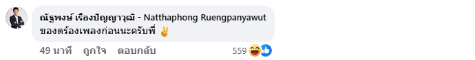 ด้าน นายณัฐพงษ์ เรืองปัญญาวุฒิ หัวหน้าพรรคประชาชน และแคนดิเดตนายกฯ เข้ามาคอมเมนต์แซวว่า “ของดร้องเพลงก่อนนะครับพี่”