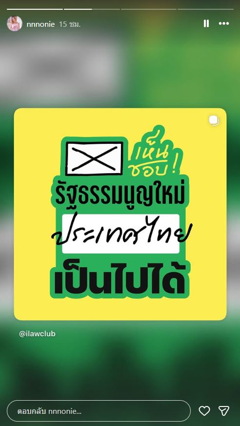เกิดอะไรขึ้น? นนนี่-นนลนีย์ ภักดีดำรงฤทธิ์ ลูกสาวคนสวยของนักแสดงรุ่นใหญ่ แอน สิเรียม ออกมาโพสต์ข้อความผ่านสตอรี่ไอจีว่า “อายคนจัง, หนีกลับหลุม” พร้อมแชร์ข้อความเห็นชอบธรรมนูญฉบับใหม่