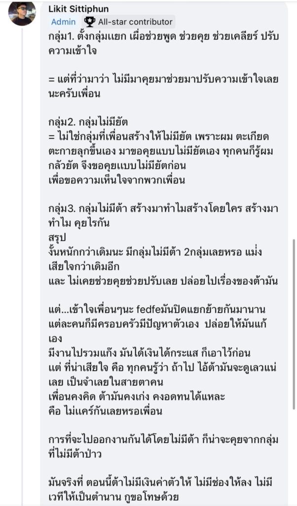 แต่….เข้าใจเพื่อน ๆ นะ fedfe มันปิดแยกย้ายกันมานาน แต่ละคนก็มีครอบครัวมีปัญหาตัวเอง ปล่อยให้มันแก้เอง