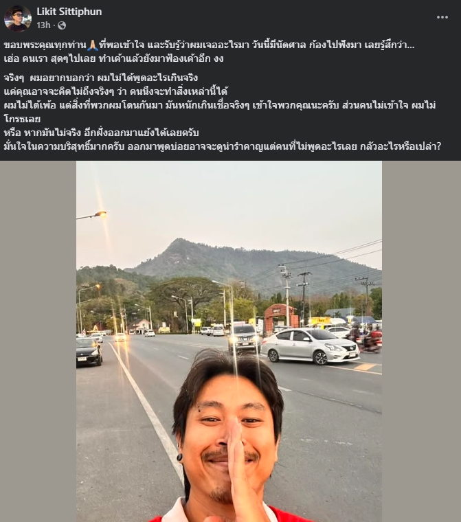 ผมไม่ได้เพ้อ แต่สิ่งที่พวกผมโดนกันมา มันหนักเกินเชื่อจริง ๆ เข้าใจพวกคุณนะครับ ส่วนคนไม่เข้าใจ ผมไม่โกรธเลย หรือ หากมันไม่จริง อีกฝั่งออกมาแย้งได้เลยครับ มั่นใจในความบริสุทธิ์มากครับ ออกมาพูดบ่อยอาจจะดูน่ารำคาญ แต่คนที่ไม่พูดอะไรเลย กลัวอะไรหรือเปล่า?”