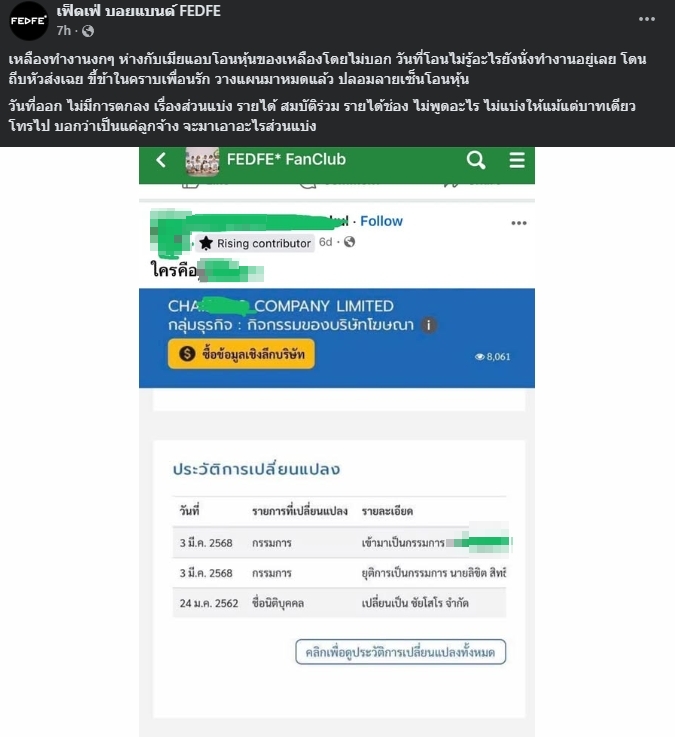 เพจเฟ็ดเฟ่ เปิดปมใหม่ “ปลอมลายเซ็น-โอนหุ้นลับหลัง” !?
