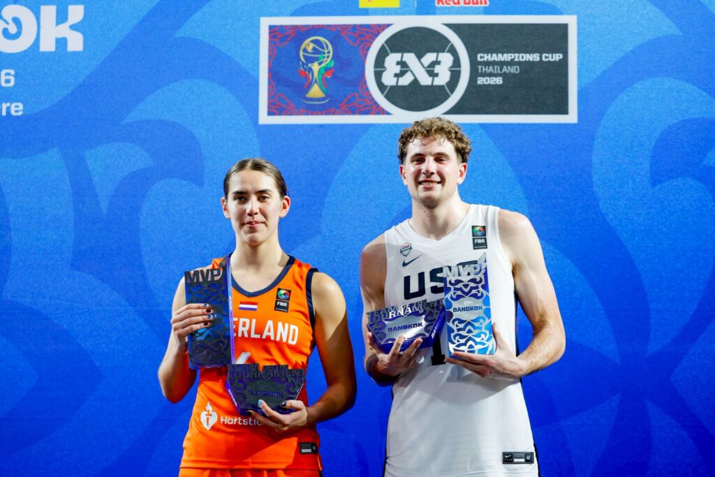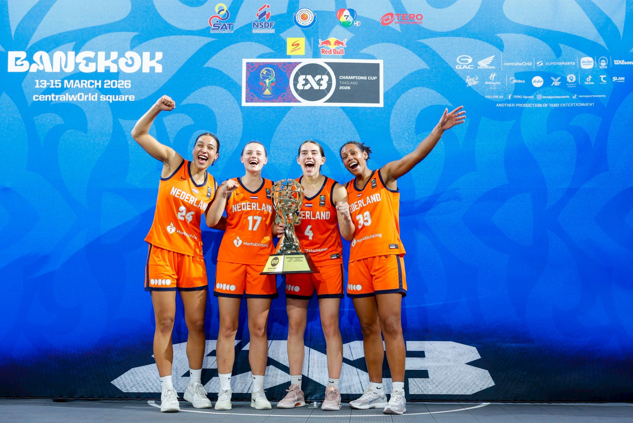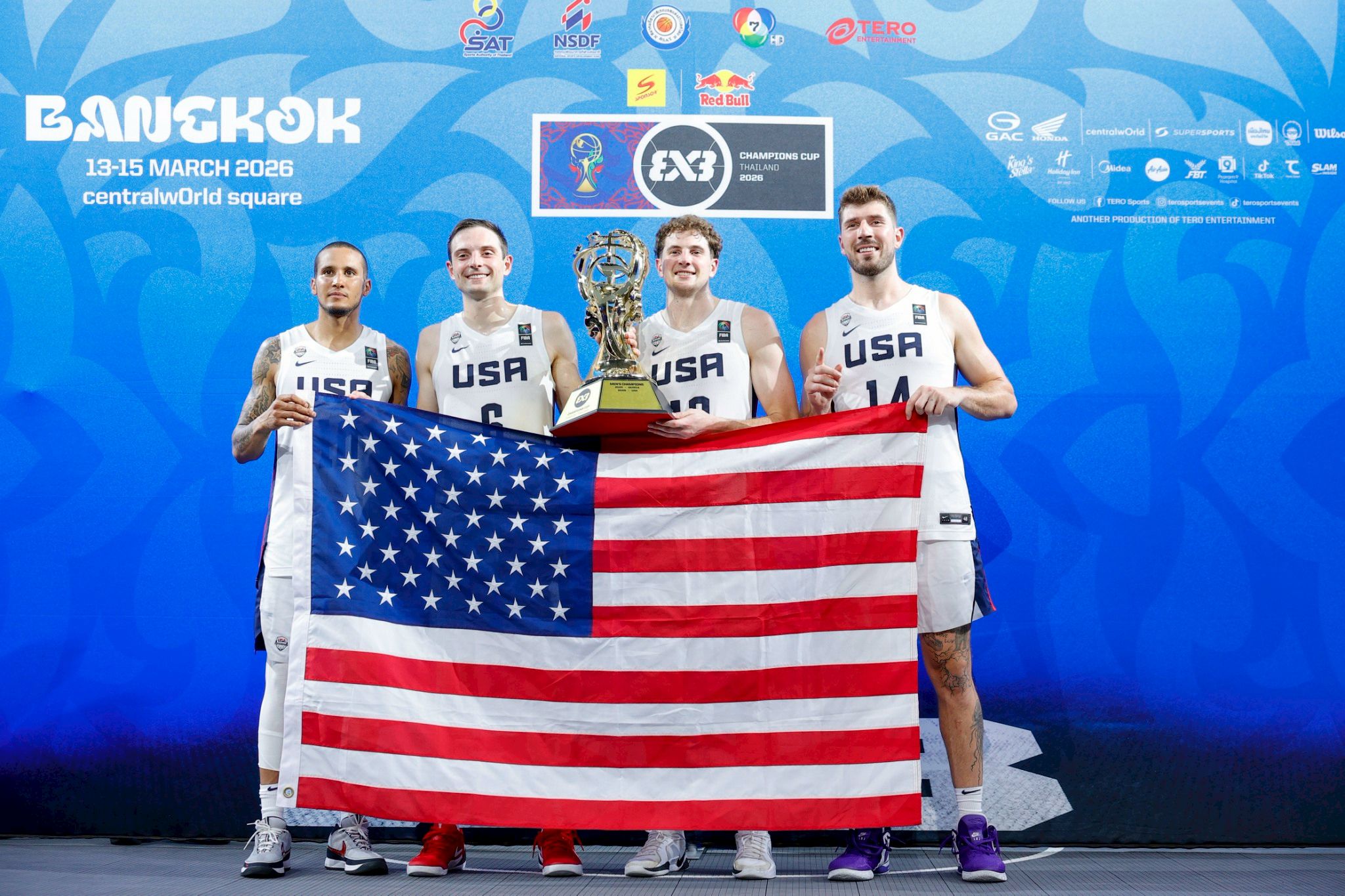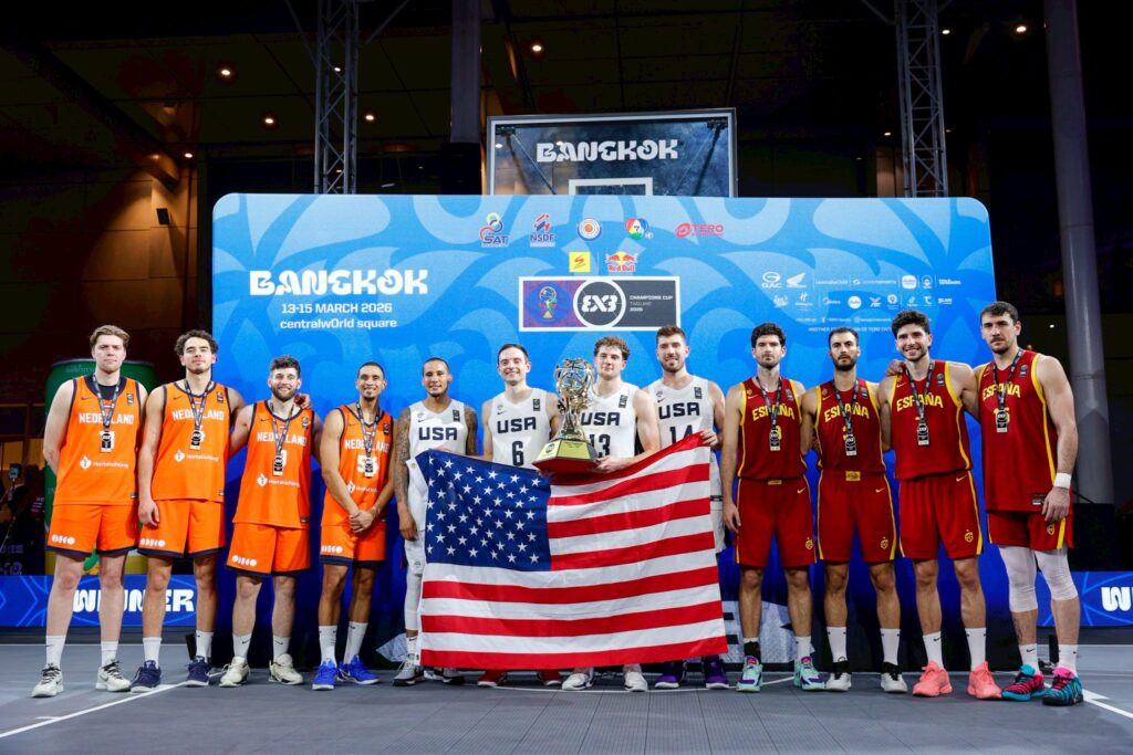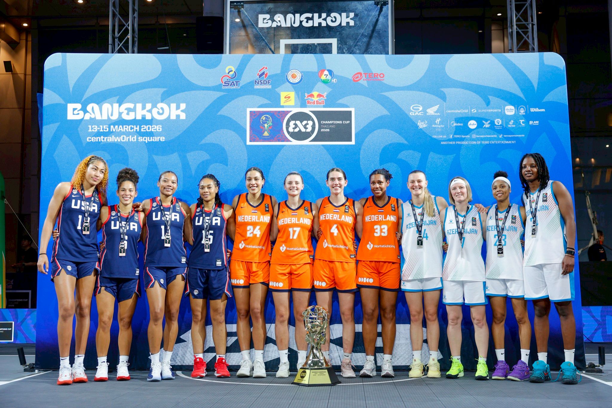 ทีมชาติอเมริกา และ ทีมชาติเนเธอแลนด์ ทีมชาย-หญิงสุดแกร่ง คว้าแชมป์รายการ “ฟีบ้า ทรีเอ็กซ์ทรี สปอนเซอร์ | เรดบูล แชมป์เปี้ยนส์ คัพ 2026” (FIBA 3×3 Sponsor | Red Bull Champions Cup 2026) ไปครองอย่างยิ่งใหญ่ โดยมี คุณพิมล ศรีวิกรม์ ประธานคณะกรรมการโอลิมปิคแห่งประเทศไทยฯ, คุณนิพนธ์ ชวลิตมณเฑียร นายกสมาคมกีฬาบาสเกตบอลแห่งประเทศไทย, คุณณัฏฐพล ทีปสุวรรณ อุปนายกสมาคมกีฬาบาสเกตบอลแห่งประเทศไทย, มร. ไบรอัน แอล มาร์การ์ กรรมการผู้จัดการ บมจ. เทโร เอ็นเทอร์เทนเม้นท์ และ คุณมัลลิกา เหลืองนิมิตรมาศ ผู้อำนวยการฝ่ายการตลาดประเทศไทย กลุ่มธุรกิจ TCP ร่วมแสดงความยินดี เมื่อวันอาทิตย์ที่ 15 มีนาคม ที่ผ่านมา ณ ลานหน้าศูนย์การค้าเซ็นทรัลเวิลด์