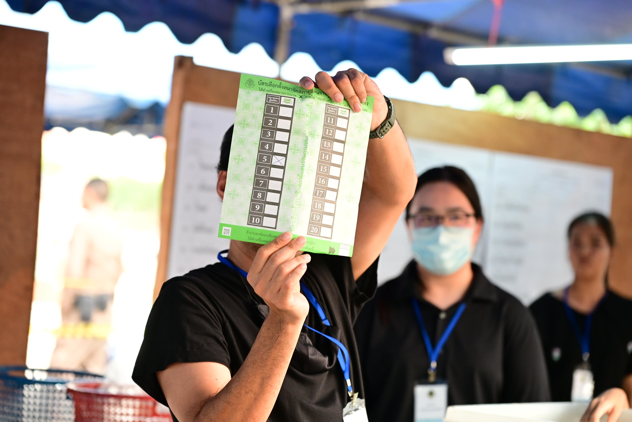 เมื่อถามว่ามั่นใจว่ากระบวนการเป็นความลับ แต่ทำไมบัตรเลือกตั้งครั้งใหม่ถึงไม่มีรหัสที่ขั้วบัตร ออกมา นายแสวง ไม่ได้ตอบคำถามดังกล่าว แต่ระบุว่า จริงๆ บัตรเลือกตั้งเป็นอำนาจของ กกต. เพียงแต่เราต้องปกป้องการเลือกตั้ง และต้องทำให้สำเร็จคือการเลือกตั้งเป็นไปโดยตรงและลับ ทั้งนี้ ในอดีตหากมีข้อสงสัยเกี่ยวกับบัตร ก็ต้องส่งไปกองพิสูจน์หลักฐานเพื่อพิสูจน์ลายนิ้วมือ แต่เมื่อเทคโนโลยีทันสมัยขึ้น ก็ใช้วิธีการเพื่อป้องกันความสุจริตได้ง่ายขึ้น โดยไม่ต้องพิสูจน์ลายนิ้วมือ อันที่จริง ผู้ที่ไปพิสูจน์ว่าสามารถสแกนได้หรือไม่ ก็ไม่ใช่ผู้ที่มีหน้าที่ในการพิสูจน์