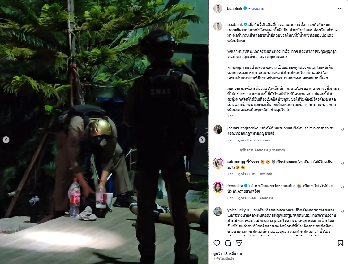 มันควรแล้วหรือคะที่ยังต้องให้เด็กที่กำลังเติบโตขึ้นมาต้องเข้าถึงสิ่งเหล่านี้ได้อย่างง่ายดายขนาดนี้ นี่ยังโชคดีที่ไม่มีใครบาดเจ็บ แต่ตอนนี้บัวก็สะดุ้งทุกครั้งที่ได้ยินเสียงเปิดปิดประตูค่ะ ขอให้ไม่ต้องมีใครต้องมาเจอเรื่องแบบนี้อีกค่ะ และขอเป็นอีกเสียงที่คัดค้านเรื่องการครอบครอง ขายหรือเสพสิ่งเสพติดทุกชนิดอย่างสุดใจค่ะ”