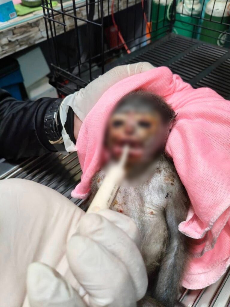 จากกรณี “น้องสงกรานต์” ค่างแว่นถิ่นใต้ เพศเมีย อายุ 1 ปี ถูกไฟฟ้าชอร์ตบาดเจ็บสาหัสในพื้นที่วนอุทยานเขาตาม่องล่าย เมื่อวันที่ 11 เม.ย.ที่ผ่านมา มีบาดแผลไฟไหม้บริเวณใบหน้าและลำตัว ก่อนเจ้าหน้าที่เร่งนำส่งสัตวแพทย์สถานีเพาะเลี้ยงสัตว์ป่าห้วยทรายเพื่อรักษา แม้ช่วงหนึ่งอาการจะดีขึ้น
