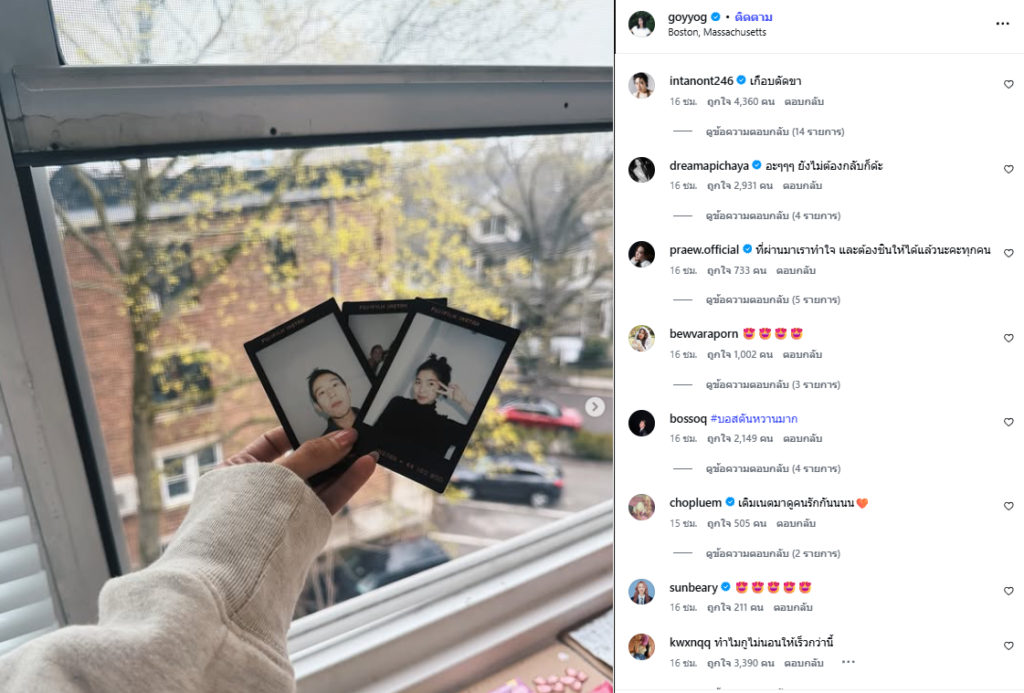 ภาพมุ้งมิ้งที่เต็มไปด้วยมวลแห่งความสุขและน่าอิจฉาสำหรับเหล่าคนโสดนี้ ทำให้บรรดาเพื่อน ๆ ของสาวก้อยและเหล่าแฟนคลับต่างเข้ามาคอมเมนต์ในไอจีของสาวก้อย จนไอจีแทบแตกกระจาย เช่น เกือบตัดขา, อะ ๆๆ ยังไม่ต้องกลับก็ได้, บอสตันหวานมาก, เติมเน็ตมาดูคนรักกัน, ทำไมกูไม่นอนให้เร็วกว่านี้ เป็นต้น