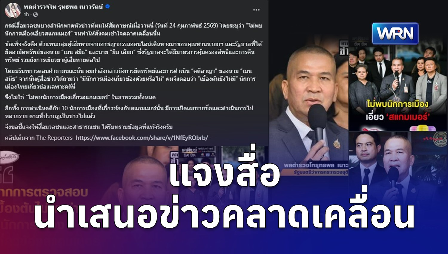 รมว.ยุติธรรม โพสต์เฟซโต้สื่อนำเสนอข่าวคลาดเคลื่อน ปมนักการเมืองไทยเอี่ยวสแกมเมอร์