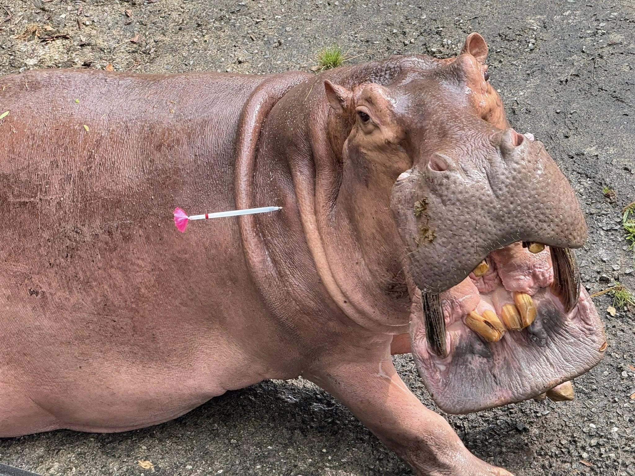 ทีมสัตวแพทย์ จัดฟัน “พี่เป๋” ฮิปโปเขาเขียว หลังฟันล่างยาวแทงเหงือก