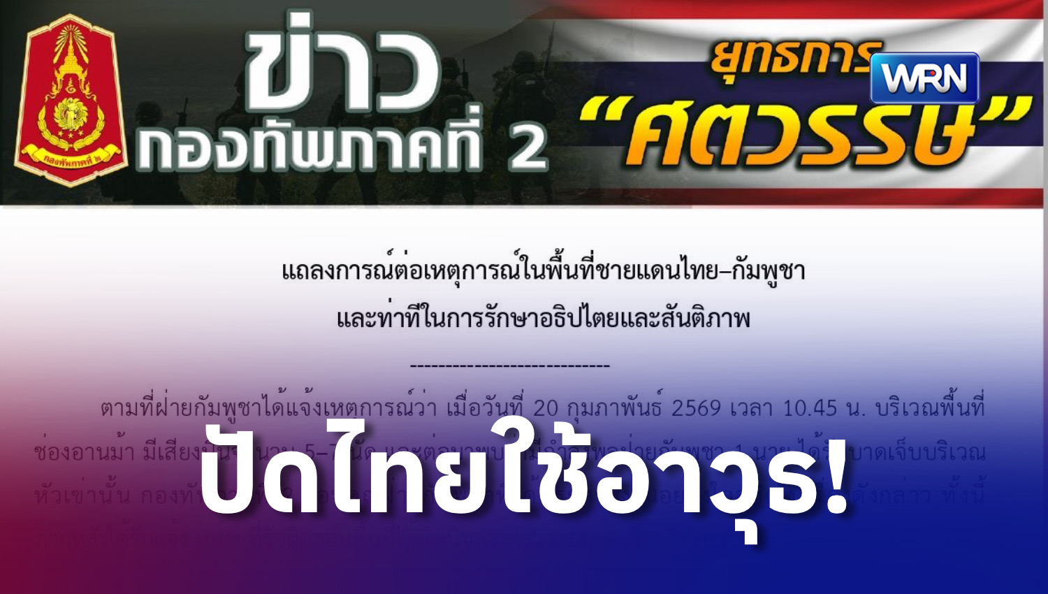ทภ.2 แจงเหตุเขมรยิงปืน ค. ไทยยิงเตือนตามขั้นตอน คุมสถานการณ์ทันที
