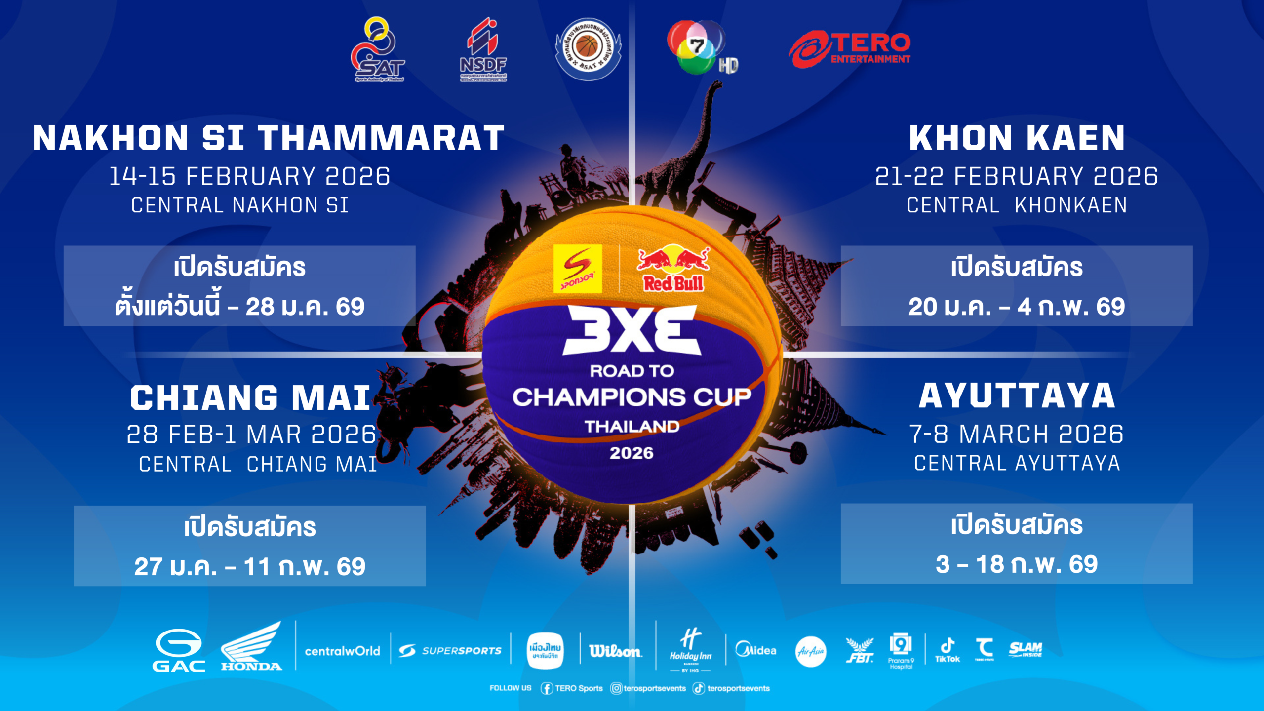 ความยิ่งใหญ่จะกลับมา!! ไทยรับเจ้าภาพจัดศึกบาสฯ“ฟีบ้า ทรีเอ็กซ์ทรี สปอนเซอร์ | เรดบูล แชมป์เปี้ยนส์ คัพ 2026” พร้อมต้อนรับนักยัดห่วง 16 ทีมระดับโลกเริ่ม 13-15 มีนาคมนี้ ณ ลานเซ็นทรัลเวิลด์