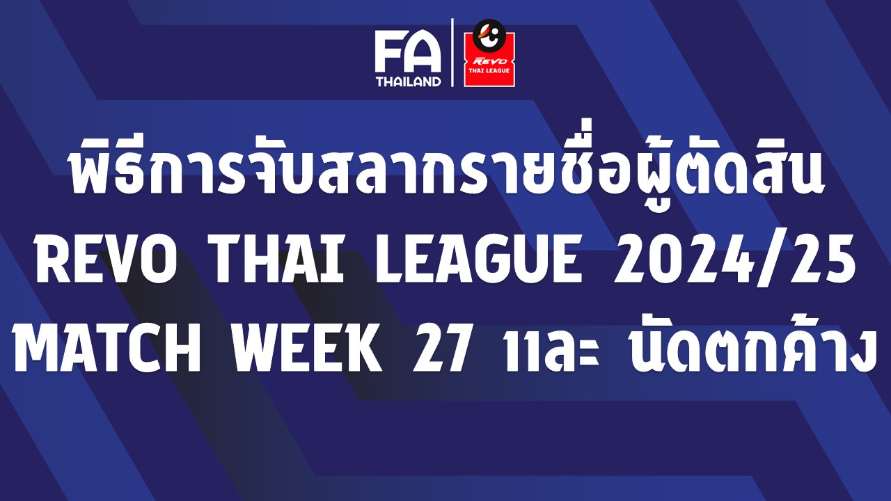 ประกาศ รายชื่อ “ผู้ตัดสิน” ปฏิบัติหน้าที่ในการแข่งขันฟุตบอล รีโว่ ไทยลีก ฤดูกาล 2024/25 แมตช์เดย์ที่ 27และ แมตช์เดย์ที่ 22 (นัดตกค้าง)